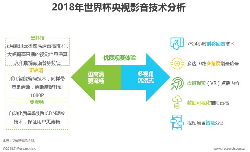 2018年世界杯,移動端觀賽用戶大量增長的背后是直播技術(shù)的升級。以央視影音為例,采用騰訊云“極速高清”直播技術(shù),為用戶提供更高清流暢的觀賽體驗。此外,以時移回看、VR全景、多路視角為代表的新技術(shù)也為世界杯觀賽帶來新的樂趣。