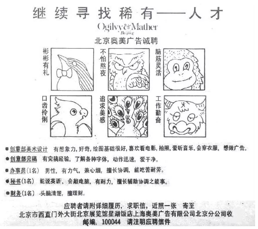 前言 《中國廣告,精彩紛呈四十年》 本期封面主題文章 第3/5篇 40年前,憑靠對時代的敏銳嗅覺,廣告人最早洞察行業復蘇跡象,上海廣告業率先復蘇,自此開啟了40年精彩紛呈、跌宕起伏的廣告公司發展序幕。 40年來,相比于企業和媒體兩大市場主體,廣告公司于市場中競爭最為徹底開放、殘酷異常。成千上萬的廣告公司“你方唱罷我登場”,共同譜寫了一曲又一曲的壯麗高歌,奉獻了一個又一個的成功神話。它們有的依然矗立在時代和行業的浪尖,有的正在經歷轉型和升級帶來的陣痛,有的已成為了歷史的塵埃。 伴隨數字時代的生態變革與價值重塑,包括國際4A在內的所有廣告公司都面臨艱難的變革突破,生存還是死亡,是時刻扣動廣告公司及其背后廣告人的深刻焦慮。 本文為國家社會科學基金項目“中國廣告40年研究”(項目編號:18BXW106)成果。 作者單位:滄州師范學院,中國傳媒大學博士研究生 本文內容篇幅較長,預計閱讀時間為20分鐘。 1992年“小平南巡”打破了80年代末以來經濟改革的沉悶與保守局面,改革開放又掀熱潮。隨后召開的黨的十四大確立了建立社會主義市場經濟體制的改革目標,中國經濟由此進入了高速發展階段。在此大背景下,廣告公司也進入了快速發展期,本土廣告公司實力較上一階段有了質的提升,中國廣告業迎來了又一個狂飆突進、繁榮蕪雜的春天。 主體走向多元,生態發生重構 這一時期,隨著市場經濟的全面發展,廣告的政治意識形態色彩已經完全褪去,個體、私營等經營主體開始全面進入廣告業,而不只是之前所限定的設計與制作領域。同時,對外政策進一步開放,外資廣告公司通過合資等方式大規模進入。改革開放初期國有廣告公司獨攬業務的局面被徹底打破,中國廣告行業生態在競爭中發生重構。 私營廣告企業崛起 雖然早在1987年國務院修訂的《廣告管理條例》就將原暫行條例中的“私人不得經營廣告業務”條款修改為“具備經營廣告業務能力的個體工商戶,發給營業執照”,但直到90年代,才有了真正具有代理資格的私營廣告公司。 以北京為例,1992年底前,北京尚無一家正式批準的私營廣告代理公司。經過一番醞釀和再三掂量,1993年1月27日時任中國對外經濟貿易廣告協會副會長兼秘書長的姜弘遞交了自己的辭職申請書。他與剛從北京廣告公司辭職的任小青和從深圳回來的丁心一三人,以4、3、3的股比,組建北京市大誠廣告有限公司。2月18日,北京市工商局向北京市大誠廣告有限公司正式頒發了標明“私營有限責任公司”的企業法人營業執照。這是第一個取得北京市工商局頒發的標明“注冊資金100萬元人民幣”“經營范圍:設計、制作、代理、發布國內和外商來華廣告業務”的企業法人營業執照的廣告代理公司;也是北京市第一家正式獲準的“無上級主管”、完全由自然人組成的私營廣告代理公司。 處在中國改革開放最前沿的珠三角地區,局面也迅速打開,各種主體的廣告公司數量很快突破了1500家。被業界稱作“黑馬大叔”的張小平將掛靠在國營公司下面八年之久的廣州黑馬設計事務所獨立出來,迎來突破口。從1992年到1993年,廣東省的廣告經營單位從1835家一下子躍升到4246家,增長率為131.4%,廣告從業人數也從21747躍升到41351,增長率為90.1%,廣告營業額也從10.6億增長到21.5億,增長率為101.4%。 和張小平一樣,成立于1989年的梅高設計事務所的“總舵主”高峻也在思考將公司從廣西搬到上海。1992年,梅高創意咨詢有限公司在上海正式成立。此時的葉茂中,正在將他從業以來的廣告經驗寫成一本書,而這本書,就是后來頗有影響力的《廣告人手記》。隨后成立了個人色彩頗濃的葉茂中營銷策劃公司,并且將出版書籍作為了廣告公司最好的宣傳渠道。 數據可以顯示這一時期的狂飆突進。1991年全國廣告行業有個體和私營企業242戶,從業人員1987人,廣告營業額847.8萬元,而這些企業大都從事廣告制作業務。到2001年廣告經營單位達78339家,從業人員709076人,廣告營業額794.9億元。十年間,中國廣告公司數量和廣告業體量均實現指數級增長。 跨國公司來勢洶洶 跨國廣告公司早在80年代初期就已經開始進入中國,隨著90年代對外政策的進一步放開,跨國公司加快了在中國的布局步伐。從1992年至1993年,包括奧美、麥肯、BBDO、精信、盛世等在內的知名跨國廣告公司一口氣在北京、上海、廣州三大經濟重鎮布下了20枚棋子,1992年上半年,跨國廣告公司從之前的28家躍升到55家。 作為全球最成功的廣告公司之一,奧美廣告在1991年圣誕節前后與上海廣告公司成立合資公司上海奧美廣告有限公司。同年年底,奧美廣告公司在《新民晚報》上刊登了一則只有一行的公司招聘廣告,把自己稱之為“快樂的工作地”,奧美廣告公司在這則招聘廣告之后收到了1200多份申請。因為有廣告和市場營銷經驗的人非常之稀少,上海奧美最早的本土員工是一些藝術家、設計師和營銷及文學專業的教授。當時,新人的薪水在每月200到300元左右,遠超當時社會的平均工資水平。就這樣,跨國廣告公司和現代廣告職業略帶一層神秘面紗,開始在中國大地落地生根。 20世紀90年代北京奧美的招聘廣告 這一時期的合資公司逐漸熟悉了中國市場,完成了最初的基礎工作,進而開始擠入本土廣告市場,并獲得了不少國內大客戶的代理權。1993年初號稱“中國廣告第一號”的《文匯報》整