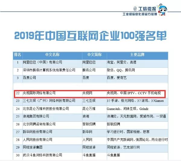 除了大眾熟知的頭部企業外,今年主流媒體軍團實力尤為強勁。其中,中央廣播電視總臺旗下新媒體機構央視網,排名更是由2017年的53位、2018年的33位,一躍挺進至22位,在中央媒體所屬互聯網企業排名第一,展現出“起跑就是加速度,發聲必為最強音”的總臺實力。