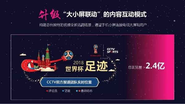 首先,新總臺對媒體融合發展高度重視,明確提出“臺網并重、先網后臺”的發展戰略,為央視網注入了一股強大動力。一方面,央視網發揮“網站+集成播控平臺”過億用戶的覆蓋傳播優勢,創新做好總臺融媒體產品開發,為用戶提供電視內容“看、用、玩”全方位綜合服務。包括與央視綜合頻道合作,大小屏互動呈現“央視快評”;與央視體育頻道聯合推出前方報道產品《世界杯足跡》,自媒體平臺總瀏覽量超過2.4億;配合央視綜合頻道《經典詠流傳》,引入歌聲合成、語音識別等 AI互動技術,打造“讀詩成曲”融媒體互動產品。