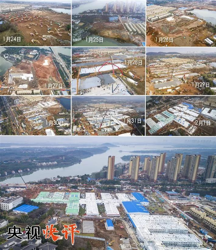 從1月23日正式立項到2月2日完工交付,短短十天,一座建筑面積達3.4萬平方米、編設床位1000張、設施完備的傳染病醫院拔地而起,成為抗擊疫情前線新的戰略支點。在網絡上,多達8000多萬人次的網民在線觀看央視頻全程直播武漢火神山、雷神山兩座醫院建造過程,為建設者鼓勁,為武漢加油!