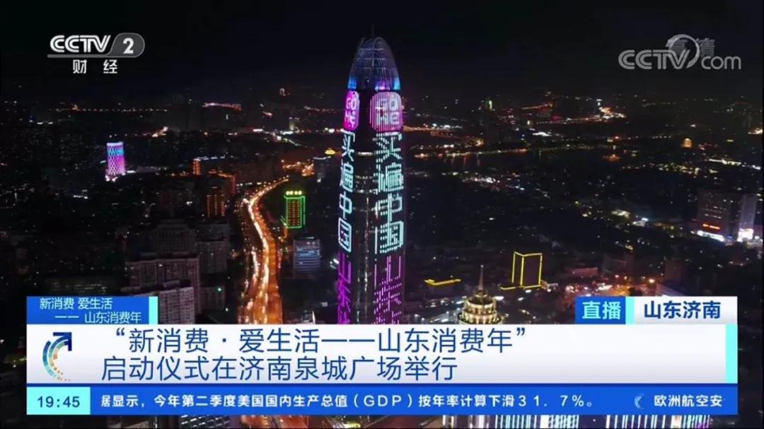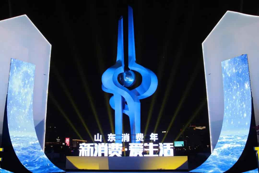 晚上19:30,“山東消費年”在濟南市泉城廣場正式啟動,李干杰省長和蔣希偉副臺長登臺,共同敲響矗立在廣場上的一面銅鑼,寓意“鳴鑼開市”。鑼聲莊重洪亮,象征著生意興旺,國富民強。