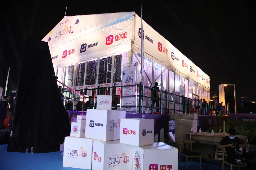 廣場上搭建了一座總臺的新媒體直播間,當晚8點,“買遍中國·山東站”帶貨直播活動在這里通過央視新聞客戶端播出,總臺央視主持人康輝、倪萍、鞠萍聯合山東出品的著名電視劇《父母愛情》演員劉琳、張齡心為山東好物打call。