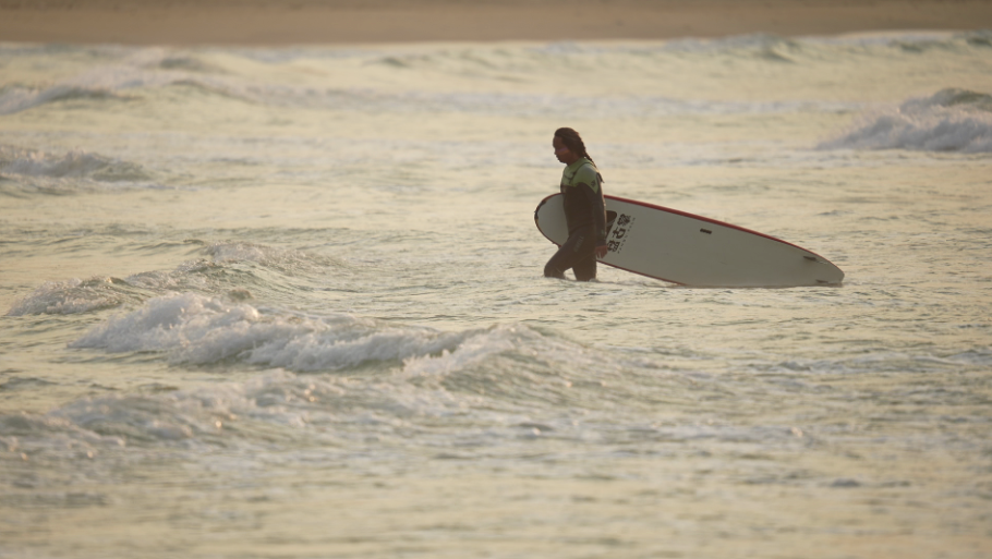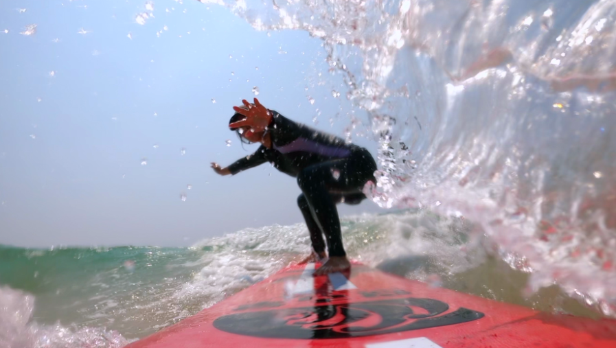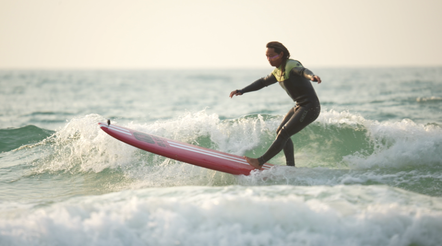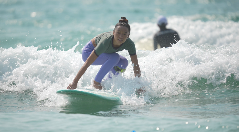 在上海工作生活的徐意賢本是一個(gè)“旱鴨子”,但她愛上了沖浪,因?yàn)樵谒磥恚瑳_浪是充電寶、加油站,沖浪使她釋放壓力,給她挑戰(zhàn)自我的勇氣。