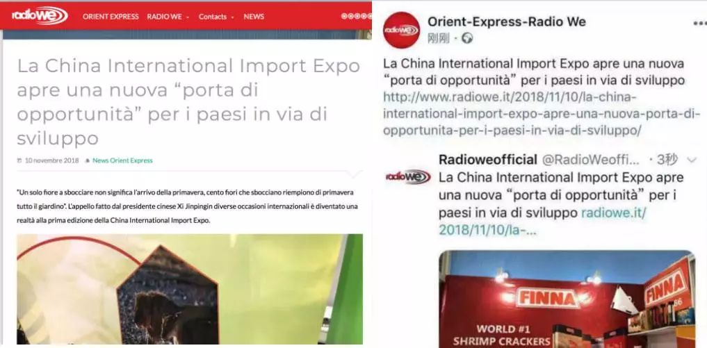 意大利Radio We電臺網站(facebook賬號、twitter賬號)2018年11月10日轉發