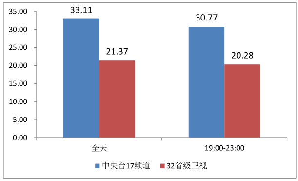 2018年,中央電視臺(tái)在電視媒體矩陣中一枝獨(dú)秀,收視走勢(shì)強(qiáng)勁。截至10月23日,在電視端全國(guó)測(cè)量?jī)x的12.87億推及人口中,中央電視臺(tái)觀眾達(dá)到12.66億,覆蓋全國(guó)98%的收視人群。用戶(hù)規(guī)模如此之大的媒體為世界所罕見(jiàn)。中央電視臺(tái)17頻道組截至10月23日全國(guó)網(wǎng)全天份額33.11%,晚間(19:00-23:00,下同)份額30.77%,同比上漲0.44個(gè)百分點(diǎn)。